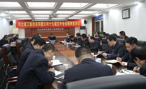 室外寒气袭人,室内暖意融融。12月1日下午,公司三楼会议室座无虚席,10个分会场的听众聚精会神。河北建工集团党委书记、董事长李云霄正在向与会者作党的十九届五中全会精神专题宣讲。公司党委书记、董事长董富强主持宣讲会。